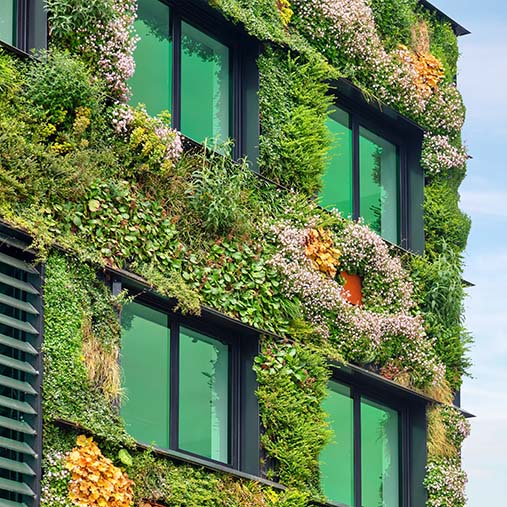 Gebouwen en het omliggende terrein bieden keur van mogelijkheden voor vergroening, biodiversiteit, regenwaterhuishouding en het tegengaan van hittestress. Zie thema Vergroening.